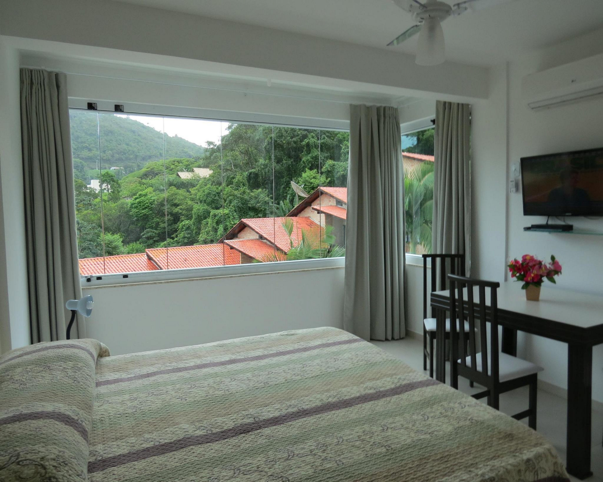-  Aire acondicionado y ventilador de techo.